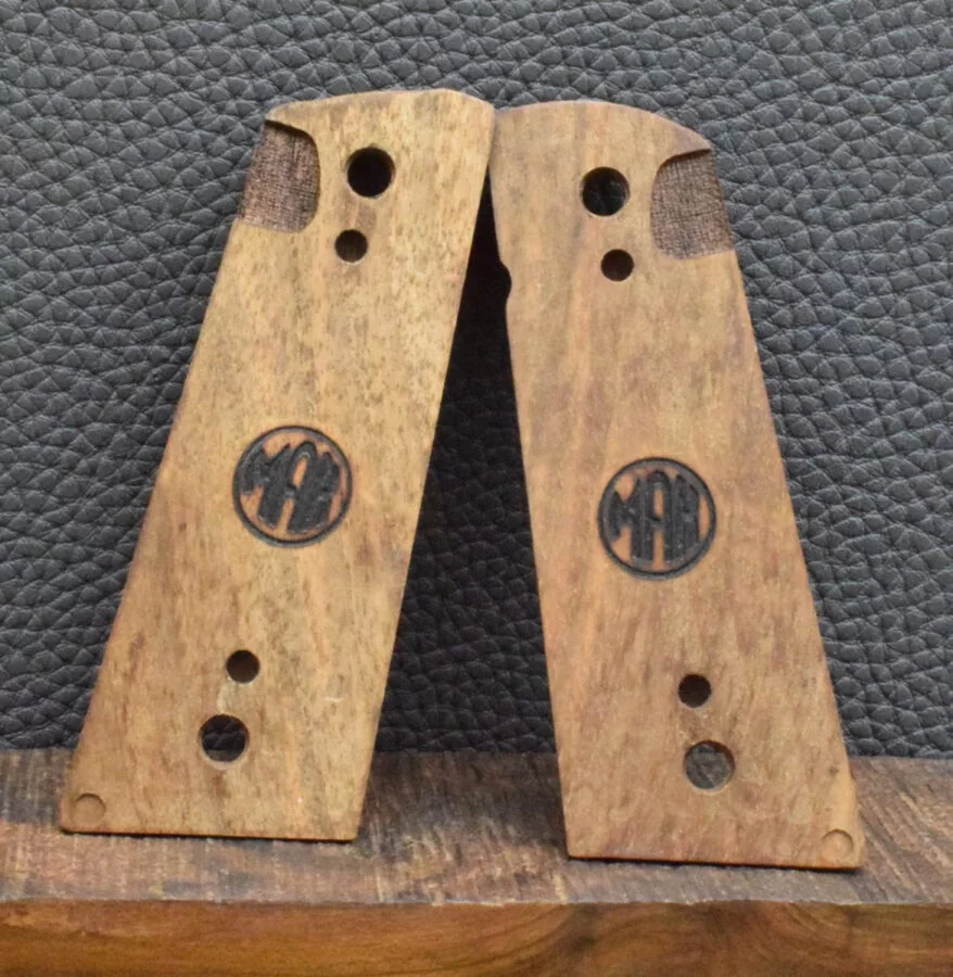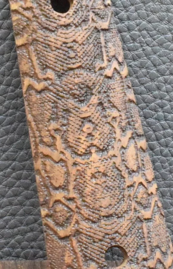 Colt 1911 Holzgriffschale, Ausführung 19, Schlangenhautoptik braun, Nußbaum, Neu