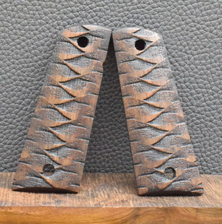 Colt 1911 Holzgriffschale, Ausführung 41,Wellen dunkel, Nußbaum, Neu