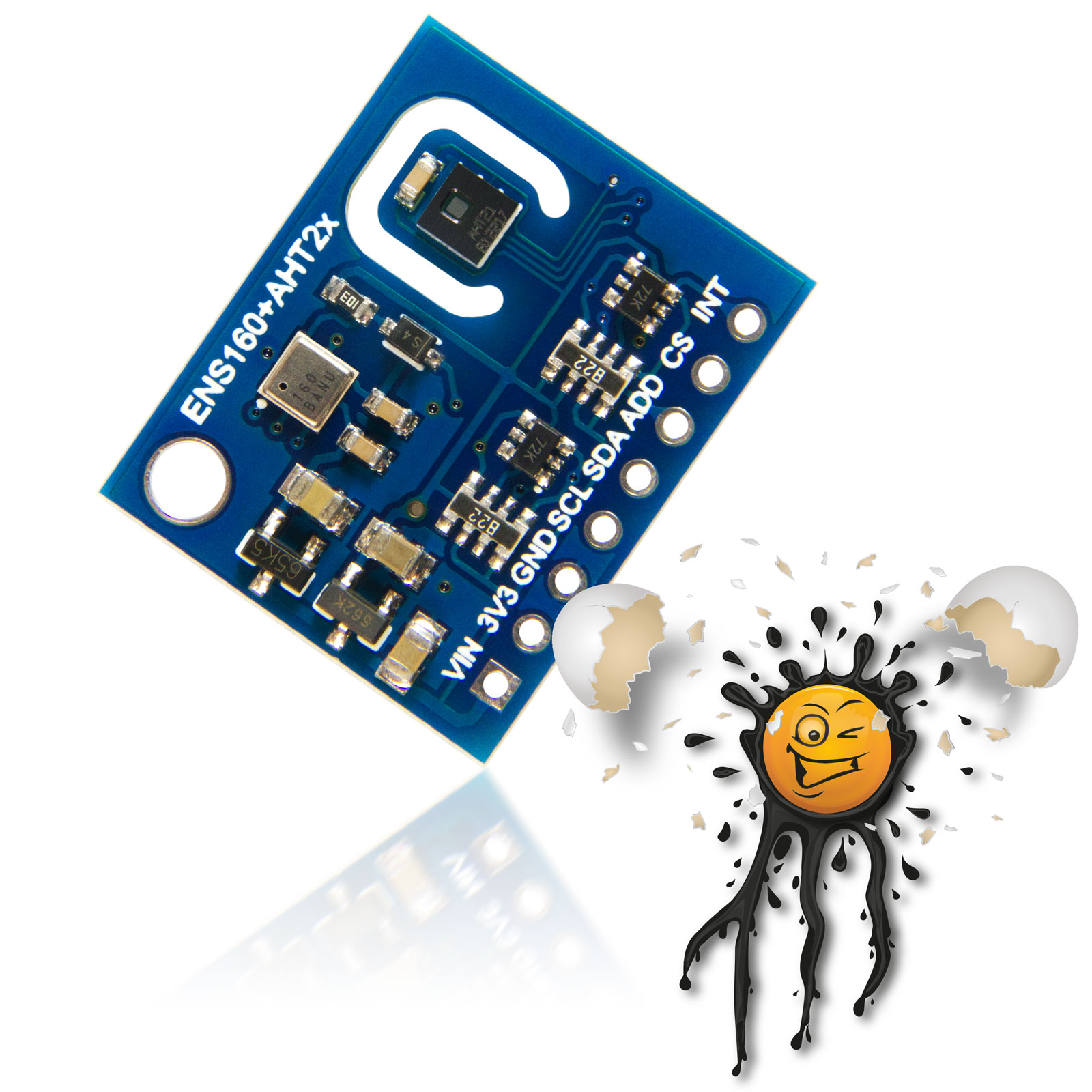 Demenstprechend stehen die Messwerte des ENS160 in direkter Abhängigkeit mit der Temperatur, als auch Lufeuchtigkeit. Zur relevanten Bestimmung der jeweiligen Temperatur, sowie Luftfeuchte verfügt das ENS+AHT21 Modul über einen integrierten AHT21 Sensor.