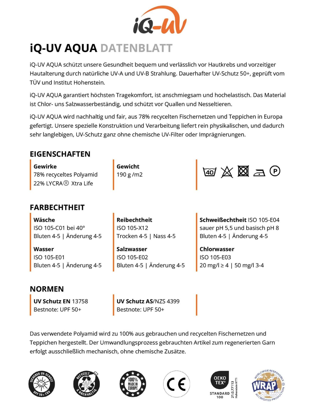 – UV Schutzfaktor 50+ (LSF)