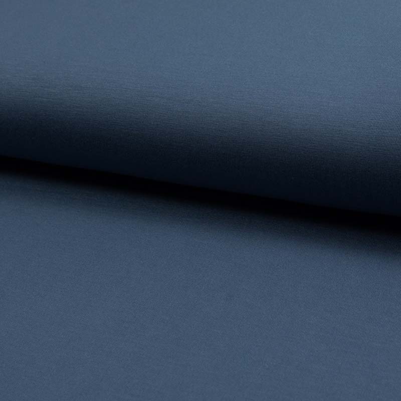 Ein hochwertiger Single-Jersey aus Bambus/Elasthan in Blau. Der Jersey eignet sich ideal für Kleider, Shirts, Hosen, Beanie Mützen, Loopschals, Pumphosen und Jogginghosen. Der Jersey ist vom Fall und Griff her mit einem Viskosejersey zu vergleichen. Er trägt sich angenehm auf der Haut. Abbildung Schnittmuster Jumpsuit Hazel und Maresa in Blau Wasserfallshirt Kat in Grau, Shirt Sue in Weiß. Shirt Senta in Rot und Rosa. Kleid Juli und Sandy in Koralle.