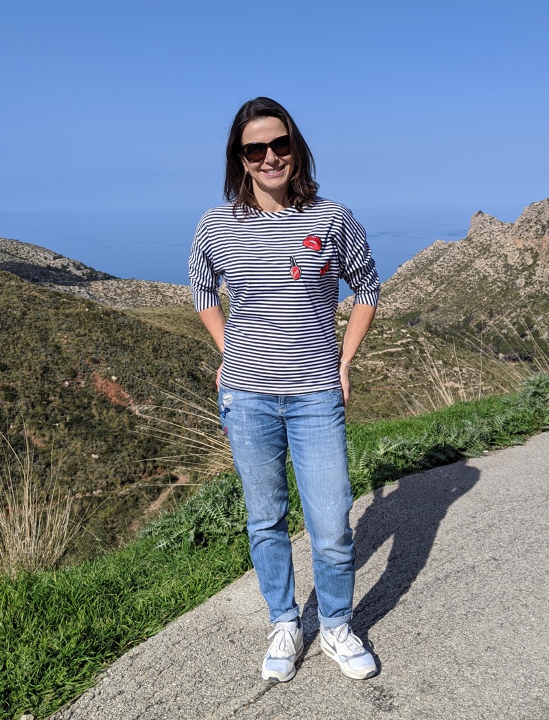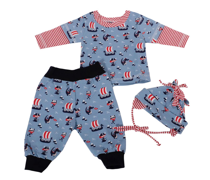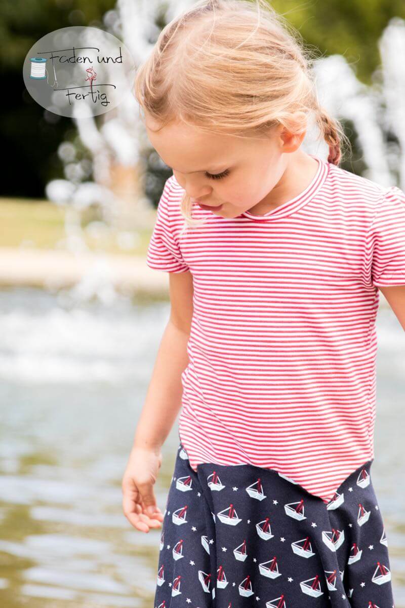 Ein hochwertiger Jersey mit rot-weißen Streifen, die je 0,5 cm breit sind, bedruckt. Es gibt hier noch weitere Stoffe aus dieser Serie, die man wunderschön miteinander kombinieren kann. Das Material ist ideal für Shirts, Kleider Hosen, Pumphosen und Oberteile. Abbildung Schnittmuster Shirt Bernice, Doro und Kinderkleid Ruby in einer Kombination der ganzen Serie.