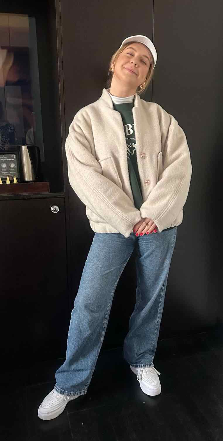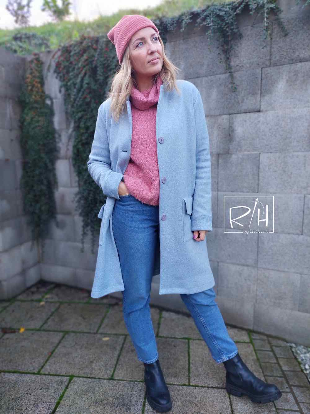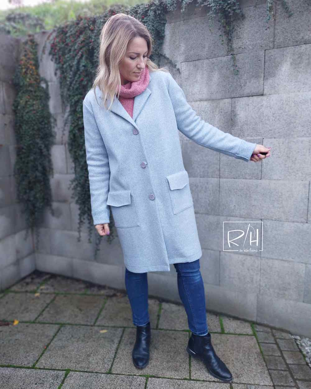 Ein wunderschöner leicht fallender Mantelstrick / Mantelflausch / Mantelstoff mit Melange Optik. Ideal für Jacken, Mäntel, Blousons und vieles mehr. Abbildung Troyer Reesa in Mint und Bomberjacke Jasmina in Ecru. Mantel Rilana zur Inspiration!