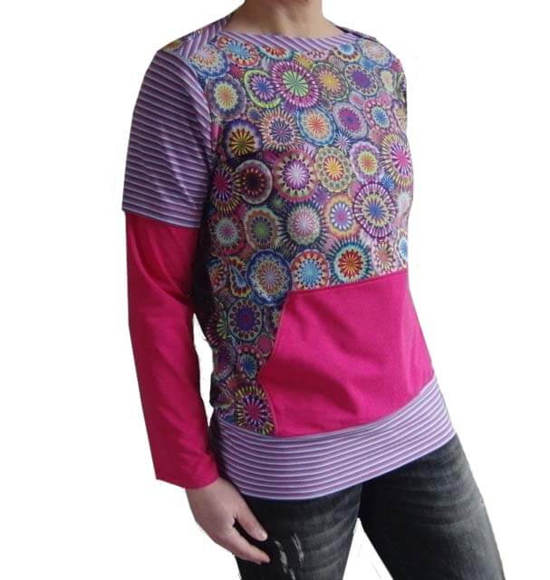 Das Shirt Elias mit amerikanischem Halsausschnitt kannst Du aus unterschiedlichsten Stoffen nähen und verschiedene Looks kreieren. Ob aus einem oder aus bunten Materialien, es wird dadurch immer anders aussehen. Die Stilrichtung kann elegant oder sportiv sein, je nachdem ob Du es mit oder ohne Bündchen nähen wirst. Dieses Shirt ist Unisex und gerade geschnitten. Du kannst es mit einfachem, kurzen, langen oder doppelten Arm nähen, die Tasche ist optional. Ein tolles Projekt für Anfänger und Fortgeschrittene.
