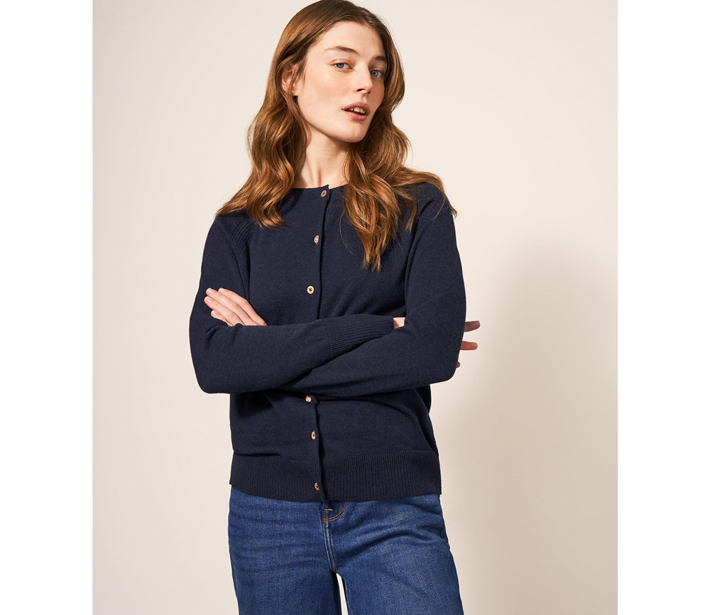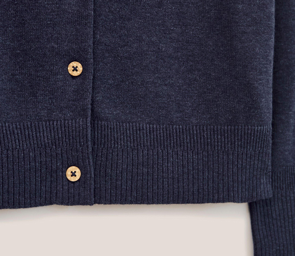 Diese Strickjacke aus Bio-Baumwolle ist leicht genug, um sie immer dabei zu haben, und warm genug, um an kühleren Abenden zu wärmen. Dafür lieben wir sie.